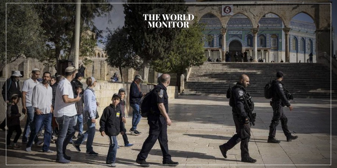 On Sunday, dozens of settlers stormed the Al-Aqsa Mosque’s courtyards under the heavy protection of the Israeli occupation forces. They were escorted on this incursion from the Moroccan Gate to the Chain Gate. Jerusalem’s Islamic Endowments Department confirmed that the settlers performed Talmudic rituals, and rabbis presented explanations about the alleged temple.