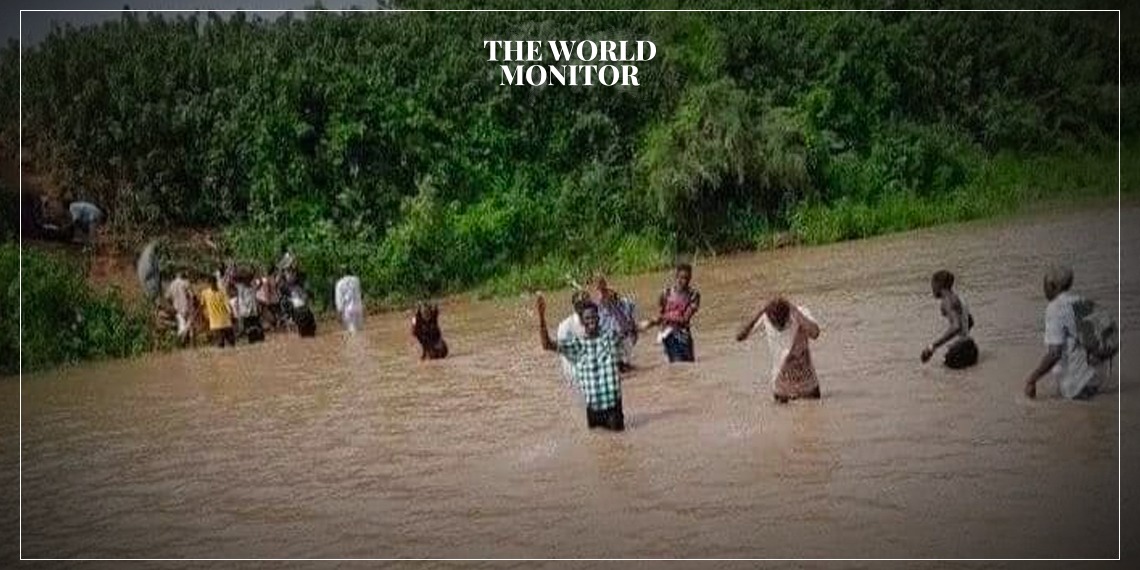 Residents fleeing Sinja through Blue Nile